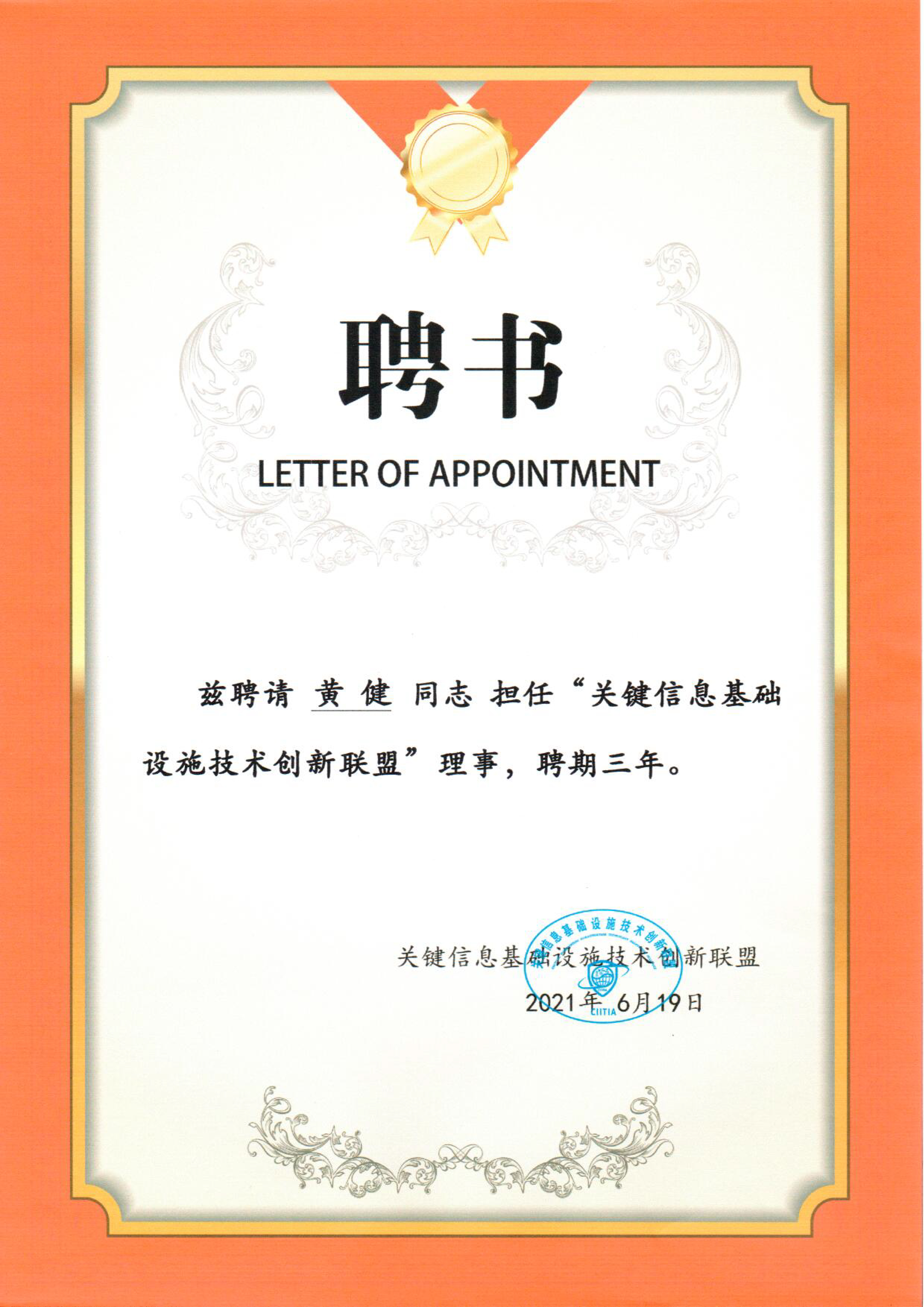 bet9九州体育登录线路副总裁黄健先生被聘请担任“关键信息基础设施技术创新联盟”理事。