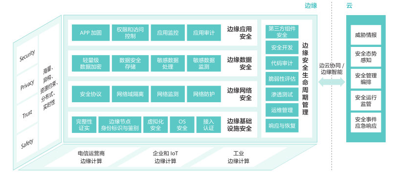 边缘安全是边缘计算的重要保障。边缘安全涉及跨越云计算和边缘计算纵深的安全防护体系,只有增强边缘基础设施、网络、应用、数据识别和抵抗各种安全威胁的能力,才能为边缘计算产业的发展构建安全可信环境。边缘安全的核心价值体现在可以提供可信的基础设施:主要包括计算、网络、存储类的物理资源和虚拟资源。基础设施是包含路径、数据交互和处理模型的平台面,可以应对镜像篡改、DDoS 攻击、非授权通信访问、端口入侵等安全威胁。