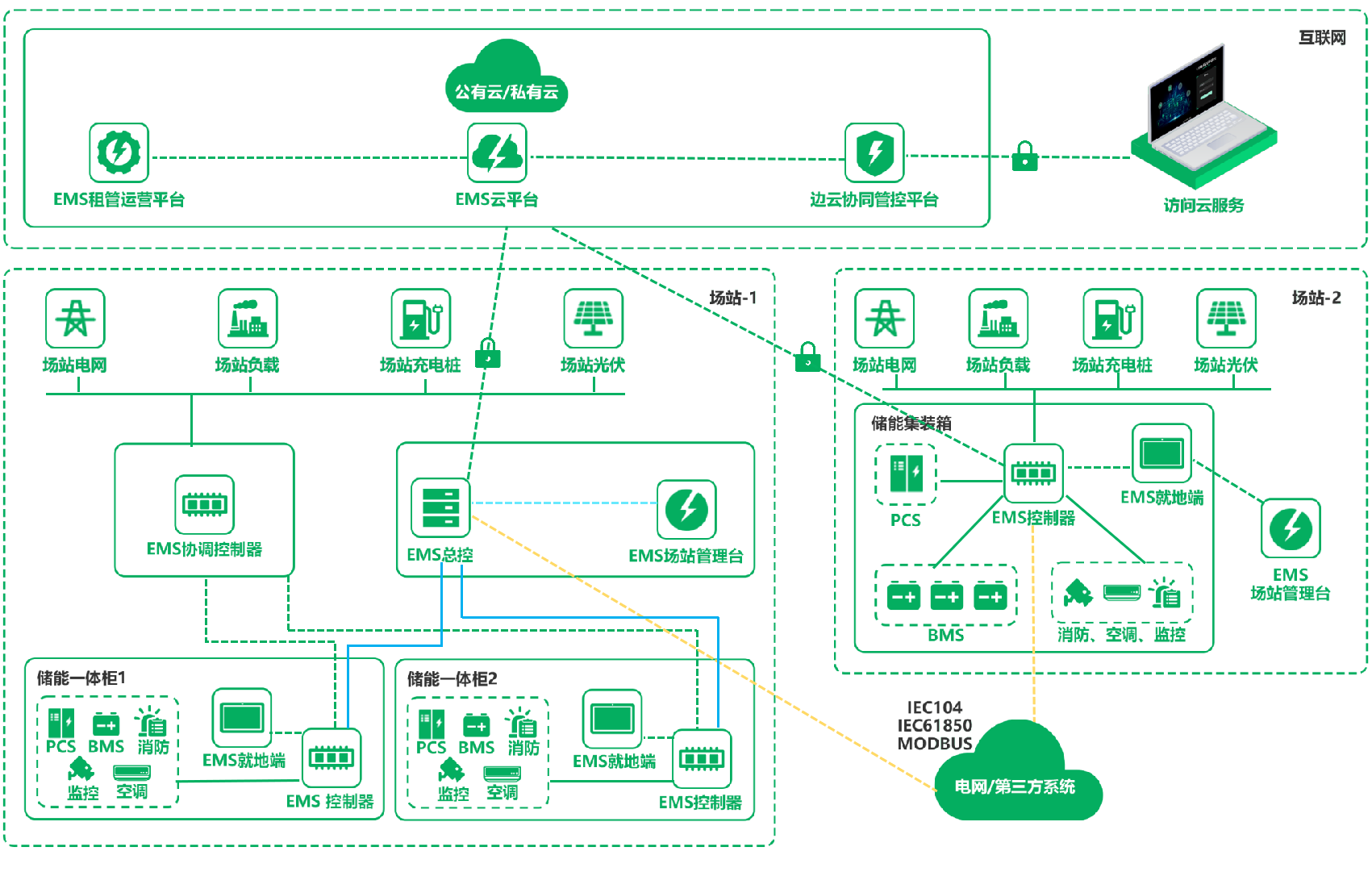 在智慧能源领域,bet9九州体育登录线路致力于EMS定制开发多年,产品以标准的基于边缘计算的物联网平台为底座,采用微服务软件架构,利用四遥技术对储能设备进行实时的数据采集与控制,并通过大数据技术对场站的能耗数据进行分析及预测,帮助企业实时了解整个场站电力系统的运行状况,从而结合系统策略,实现对储能系统各个设备的全生命周期管理。