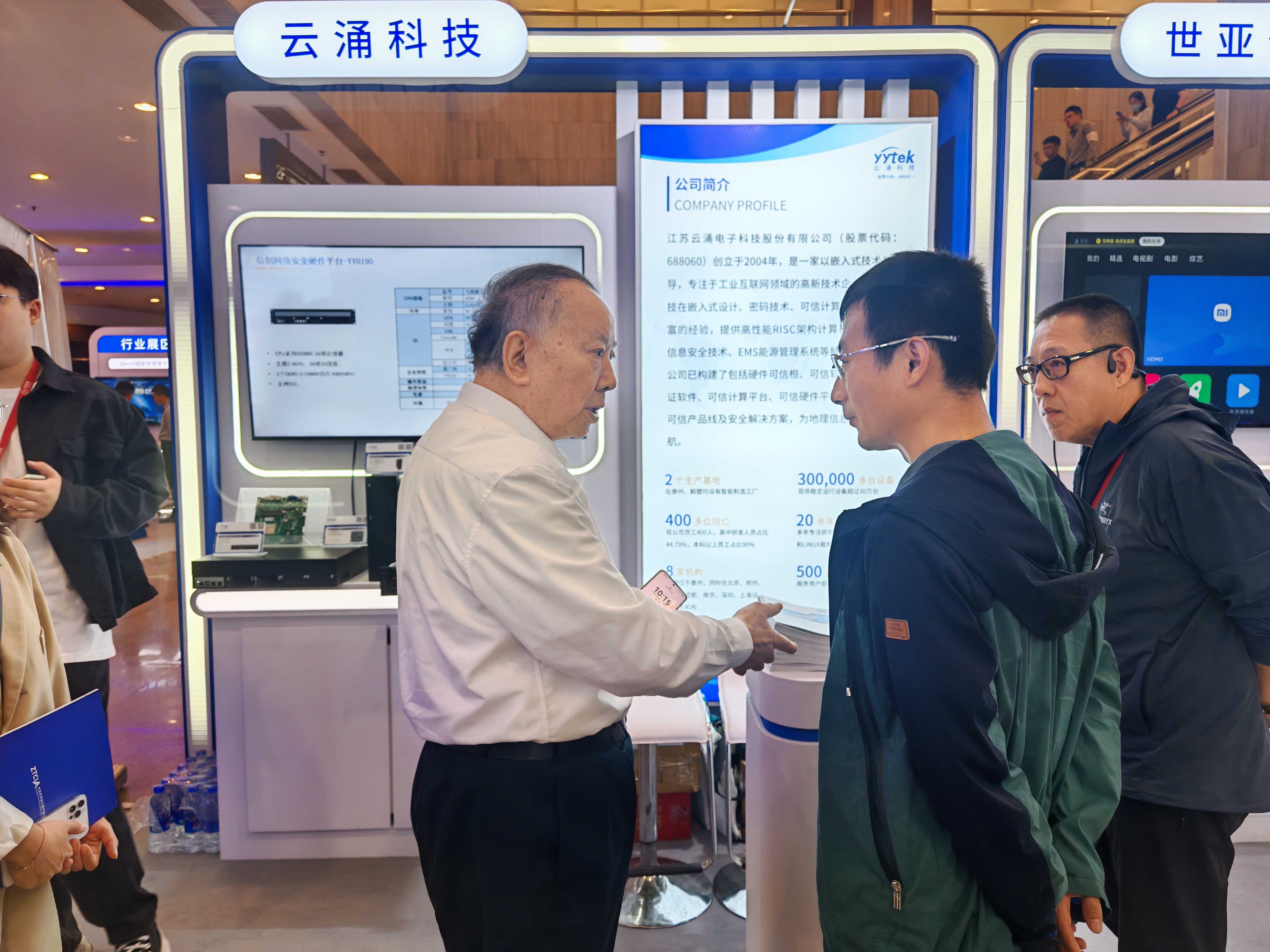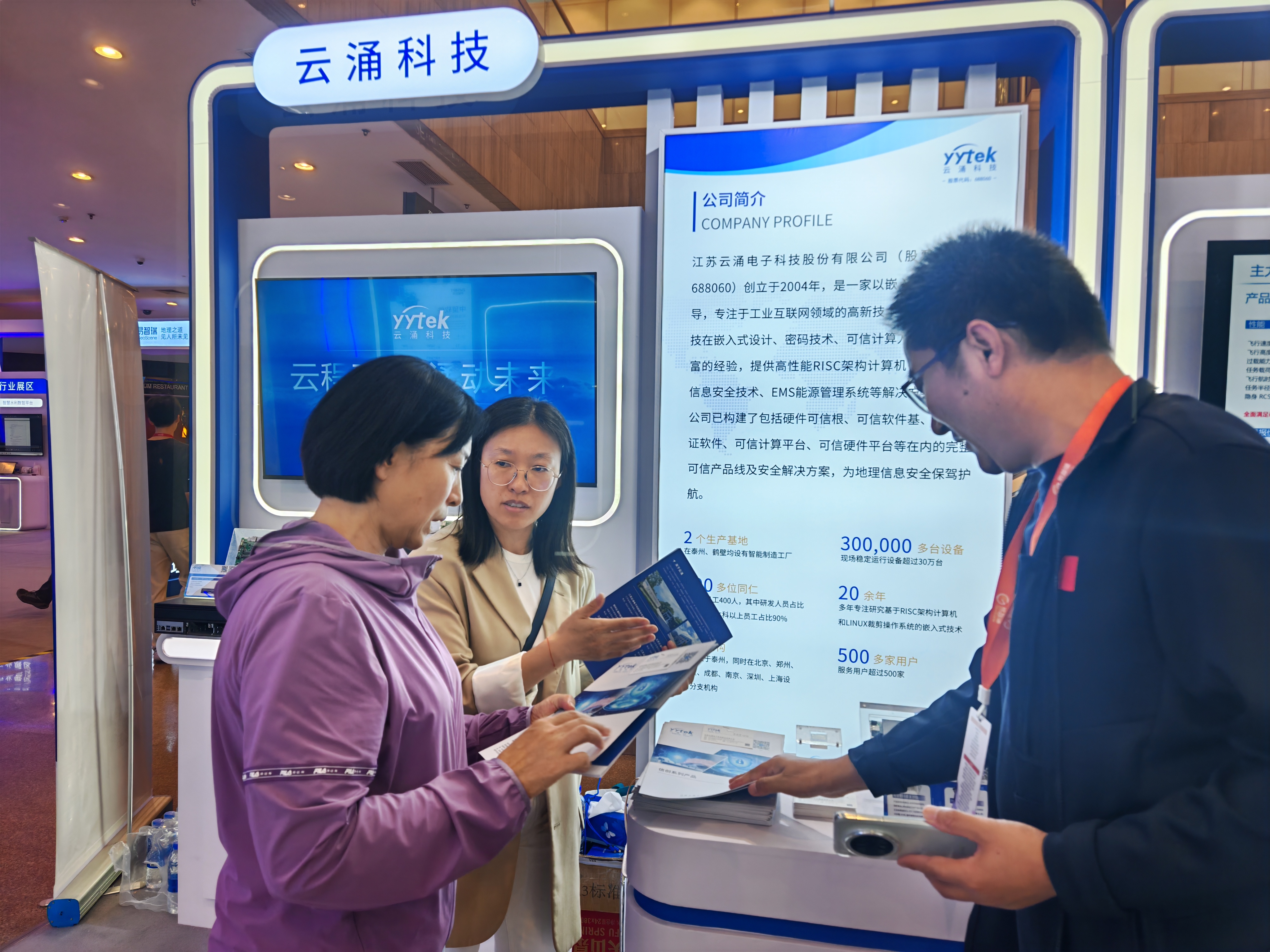 在展会现场,bet9九州体育登录线路展台集中展示了覆盖 “硬件可信根 - 可信平台 - 行业应用” 的全链条硬件产品体系。核心展品包括具备密钥生成与身份认证功能的可信模块、支持多系统架构的PCIe 可信卡,以及基于飞腾、龙芯等国产芯片打造的系列终端与服务器产品 —— 从适配轻量化场景的飞腾 E2000Q 瘦终端,到满足高密度计算需求的飞腾 S5000C-64 可信服务器,再到面向网安领域的飞腾 S5000C-16 可信硬件平台,为地理信息技术创新提供安全可靠的硬件支撑。其中,基于飞腾 D3000 的 PC 主机及主板、龙芯 3A6000 系列主板等产品,通过可信技术,实现 “计算 + 保护” 双体系结构的主动免疫防护,可有效抵御未知恶意攻击,完美契合大会 “地理可信空间建设” 核心议题。